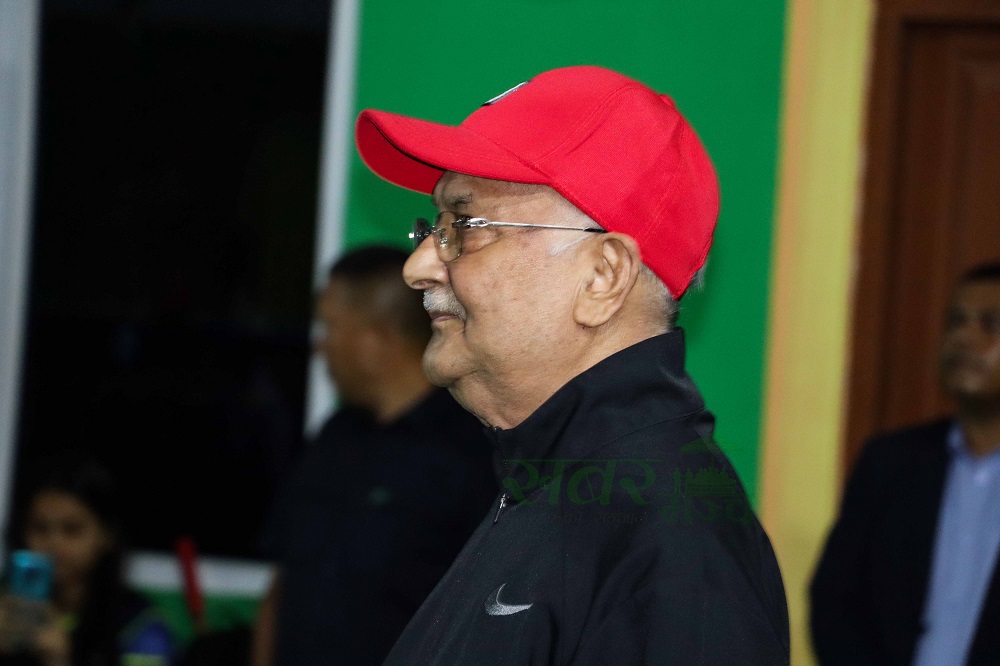 अध्यक्ष ओली बिहीबार बिहान करिब ७ बजे बिर्तामोडमा रहेको बिग ब्रदर्श ब्याडमिन्टन हलमा प्रवेश गर्दा सबै छक्क परेका थिए।