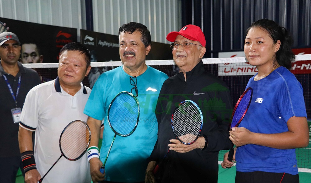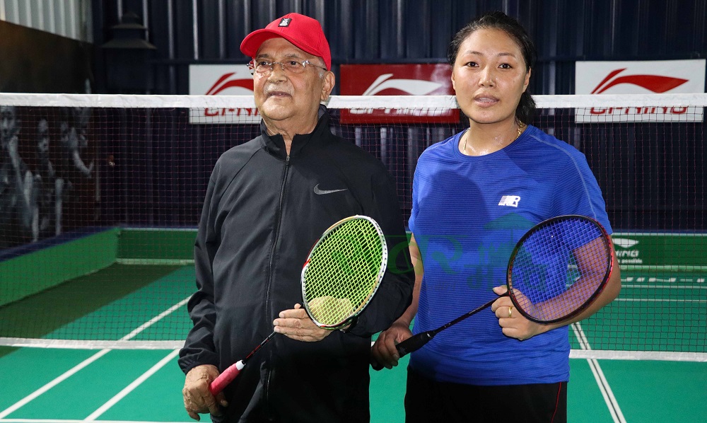 यसअघि पनि खेल तथा खेलाडीलाई उच्च मनोबल दिलाउन आफूले पनि विगतमा विभिन्न खेल खेल्ने गरेको बताउँदै आएका ओलीले बिहीबार ब्याडमिन्टन खेलेरै देखाए। उनलाई नेता खरेललाई आफ्नो विपरीत कोर्टमा राखेर ब्याडमिन्टन खेले।
