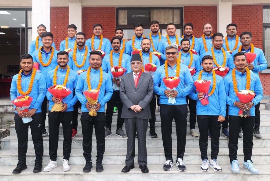 खेलाडीहरूलाई सम्मान गर्दै प्रधानमन्त्रीले भने, ‘मलाई अत्यन्त खुसी लागेको छ। हिजो तपाईहरूले जसरी प्रदर्शन गर्नुभयो, त्यसबाट तपाईहरूले मात्र जित्नुभएको छैन, देशले जितेको छ। देशको स्वाभिमान उच्च भएको छ, राष्ट्रको गौरव बढेको छ। आगामी दिनमा समेत तपाईहरूको प्रर्दशन थप राम्रो होस्, म अग्रिम शुभकामना व्यक्त गर्दछु।विश्वकप छनोटका लागि तपाईहरूलाई थप सफलता मिलोस्। म तपाईहरूको सुखदुखमा साथमै हुनेछ’ प्रधानमन्त्रीले भने, ‘यसअघि पनि सरकारले तपाईहरूलाई जनही दुई लाख राशीले पुरस्कृत गरिसकिएको छ। आज म तपाईहरूलाई जनही रू. तीन लाख पुरस्कार प्रदान गर्ने घोषणा गर्दछु।’