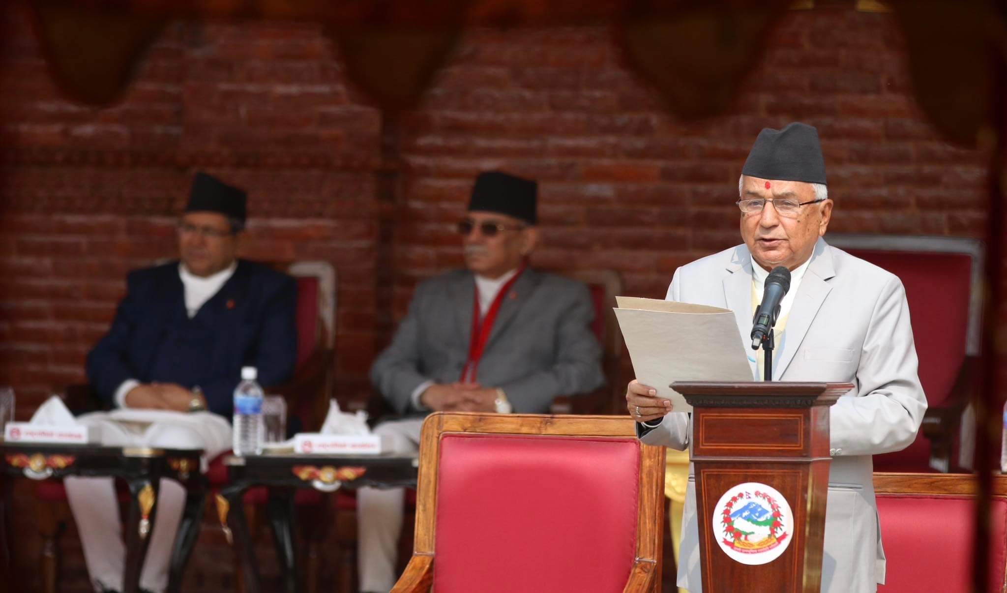 उनले भने “संविधान निर्माण गर्ने प्रक्रियामा सहभागी रहेर काम गर्ने अवसर प्राप्त गरेका कारणले पनि संविधानले राष्ट्रपतिलाई दिएको काम, कर्तव्य र अधिकारप्रति म सचेत रहने विश्वास दिलाउन चाहन्छु । वर्तमान संविधानले नेपाल राष्ट्रलाई मार्गदर्शन गर्ने कुराप्रति सदैव सजग रहने प्रण गर्दछु ।”
