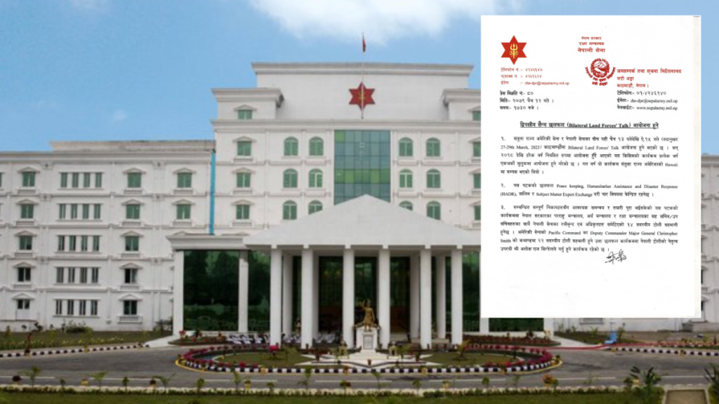 सोमबारदेखि १५ गतेसम्म हुने द्विपक्षीय सैन्य छलफलमा सहभागी हुन अमेरिकी सेनाको टोली काठमाडौं आइपुगेको नेपाली सेनाको जनसम्पर्क तथा सूचना निर्देशनालयले जनाएको छ ।