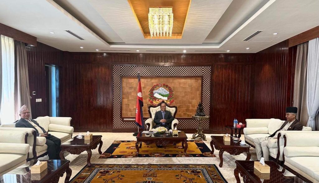 सोमबार बालुवाटारमा प्रधानमन्त्री समेत रहेका नेकपा माओवादी केन्द्रका अध्यक्ष पुष्पकमल दाहाल ‘प्रचण्ड’, नेपाली कांग्रेसका सभापति शेरबहादुर देउवा र नेकपा एकीकृत समाजवादीका अध्यक्ष माधवकुमार नेपाले मन्त्रिपरिषद्लाई मंगलबार पूर्णता दिने सहमति गरेका हुन्।