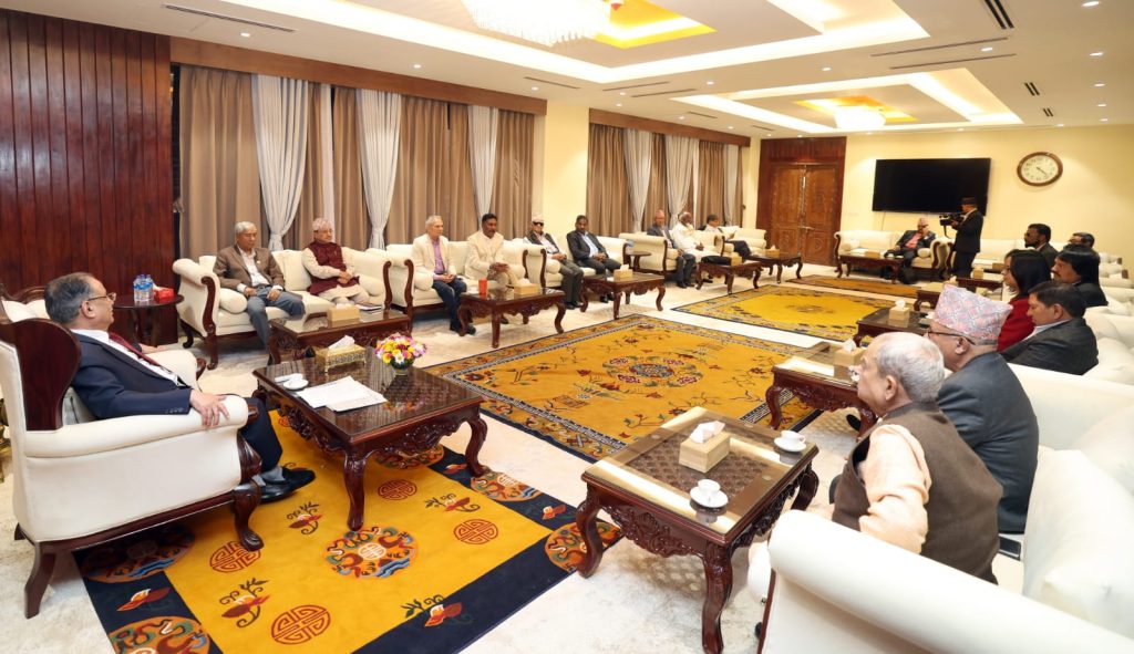सत्ता साझेदार सबै दलका शीर्ष नेताहरूको छलफल बोलाउनुअघि प्रधानमन्त्री प्रचण्डले कांग्रेस सभापति शेरबहादुर देउवा र एकीकृत समाजवादीका अध्यक्ष माधव नेपालसँग छलफल गरेका थिए।