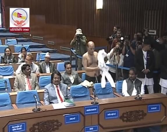 सभामुख देवराज घिमिरेले बोल्न नदिएपछि स्वतन्त्र सांसद अमरेशकुमार सिंहले संसदमा कपडा खोलेर विरोध जनाएका छन् ।