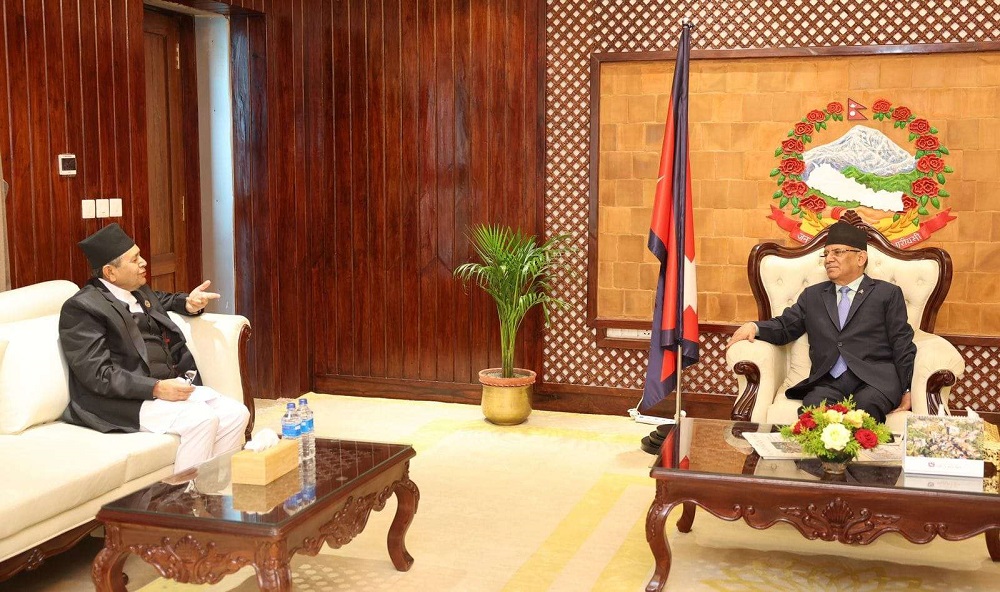 काठमाडौं । प्रधानमन्त्री पुष्पकमल दाहाल र सभामुख देवराज घिमिरेबीच भेटवार्ता भएको छ । मंगलबार बिहान प्रधानमन्त्री निवास बालुवाटारमा उक्त भेटवार्ता भएको हो ।