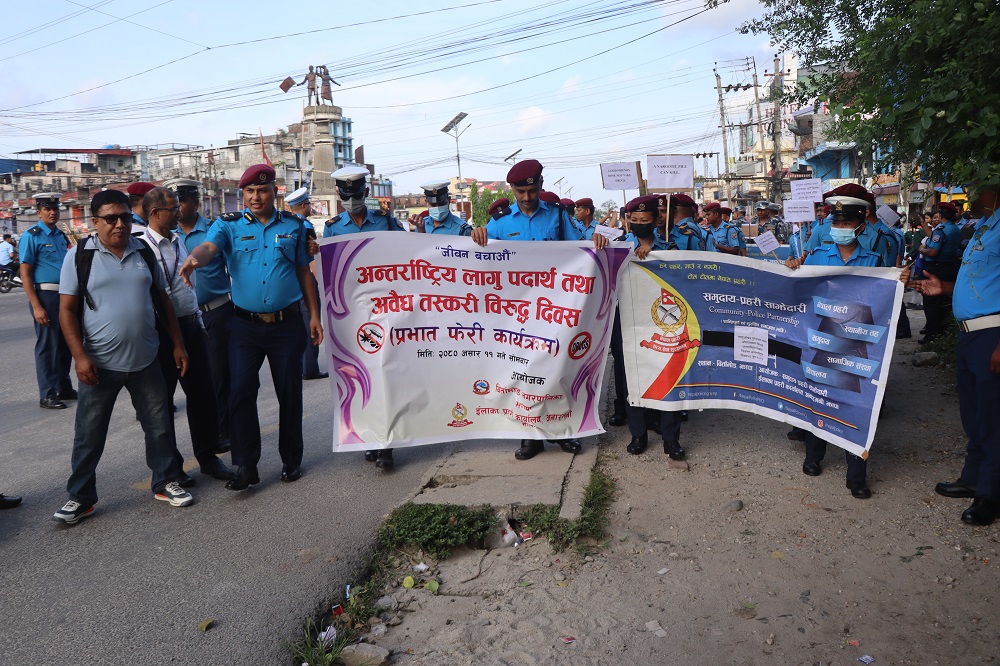 झापा । अन्तर्राष्ट्रिय लागू औषध तथा अवैध तस्करीविरुद्धको दिवसको अवसरमा झापामा साेमबार प्रभातफेरी निकालिएको छ ।