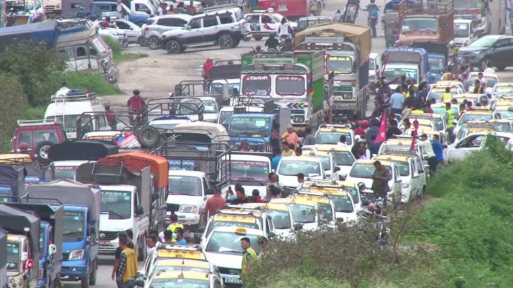 ट्रक, ट्रिपर ट्याङ्कर, साना ढुवानी गाडी, ट्याक्सि टेम्पो, नीलो माइक्रो लगायतका सवारी साधनमा आवद्ध मजदुरले बिहीवार काठमाडौंको सितापाइला चोकमा आफूहरुले काम गरेर खान पाउनु पर्ने भन्दै प्रर्दशन गरेका हुन् ।