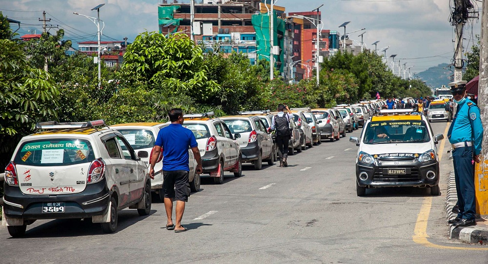 उनीहरुले सडकका दुवै किनारमा ट्याक्सी तेर्स्याएका छन् ।