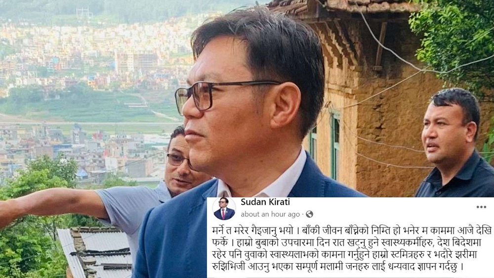 काठमाडौं । संस्कृति पर्यटन तथा नागरिक उड्डयन मन्त्री सुदन किराती बुवा गुमाएको दुइदिनमै काममा फर्किएका छन् ।