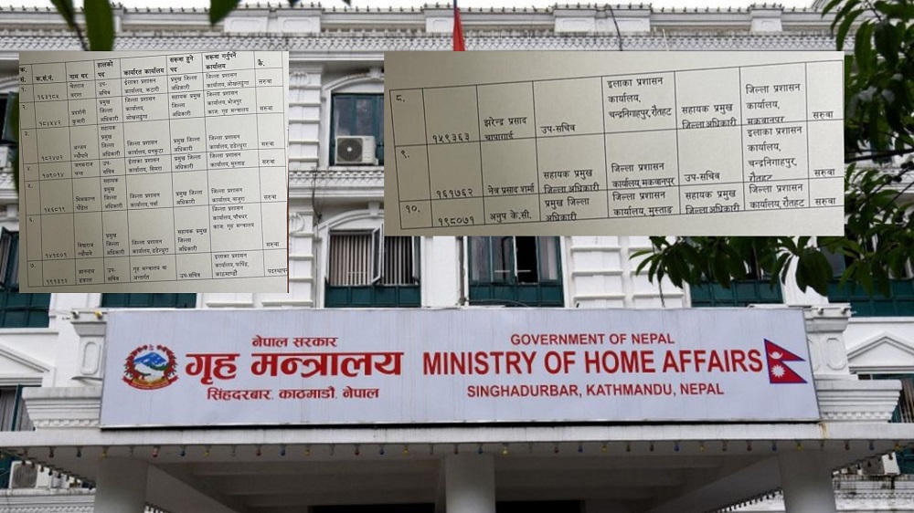 काठमाडौं । गृहमन्त्रालयले चार प्रमुख जिल्ला अधिकारीसहित उपसचिव र सहायक प्रमुख जिल्ला अधिकारीको सरुवा गरेको छ ।