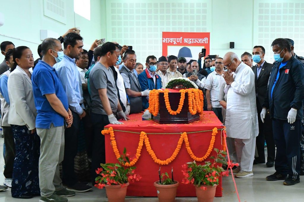 नेम्वाङको पार्थिव शरीरलाई ललितपुरको च्यासलस्थित पार्टी मुख्यालयमा राखिएको छ।