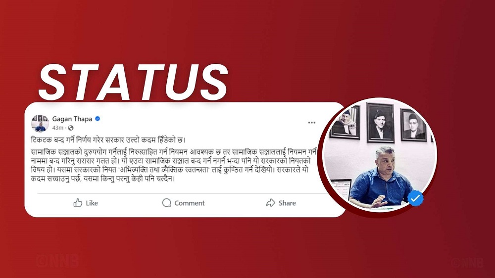 उनले भने, ‘टिकटक बन्द गर्ने निणर्य गरेर सरकार उल्टो कदम हिँडेको छ । सामाजिक सञ्जालको दुरुपयोग गर्नेलाई निरुत्साहित गर्न नियमन आवश्यक छ तर यसको नाममा बन्द गरिनु सरासर गलत हो । यो एउटा सामाजिक सञ्जाल बन्द गर्ने नगर्ने भन्दा पनि यो सरकारको नियतको विषय हो । यसमा सरकारको नियत अभिव्यक्ति तथा व्यैक्तिक स्वतन्त्रतालाई कुण्ठित गर्ने देखियो । सरकारले यो कदम सच्याउनु पर्छ, यसमा किन्तु परन्तु केही पनि चल्दैन।’