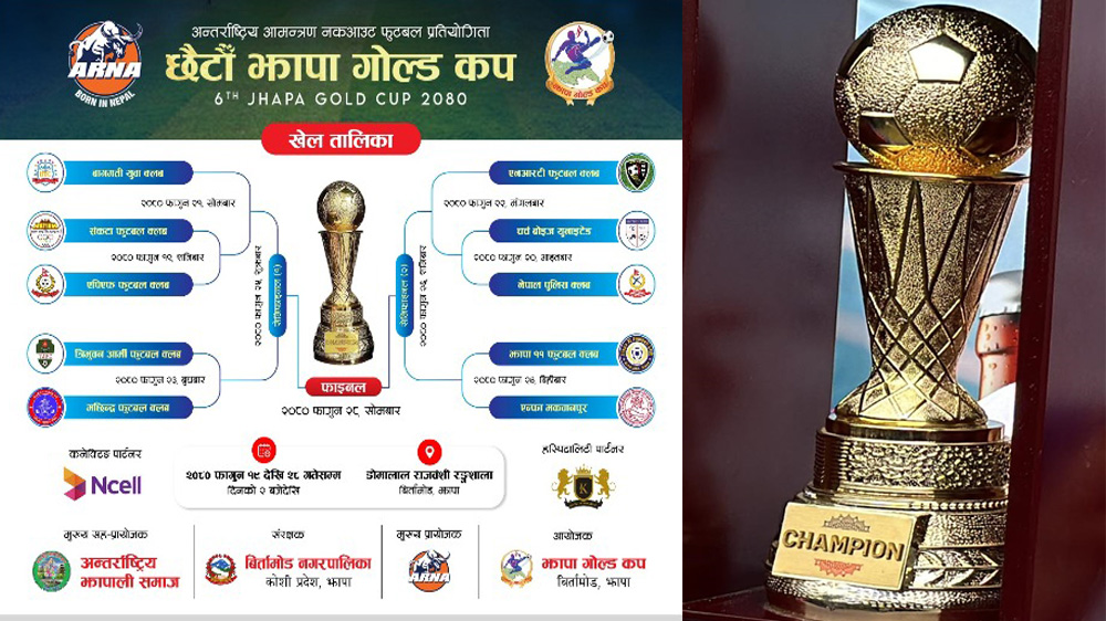 अन्तर्राष्ट्रिय झापाली समाज मुख्य सहप्रायोजक र बिर्तामोड नगरपालिका संरक्षक रहेको झापा गोल्डकपको फाइनल खेल फागुन २८ गते हुनेछ ।