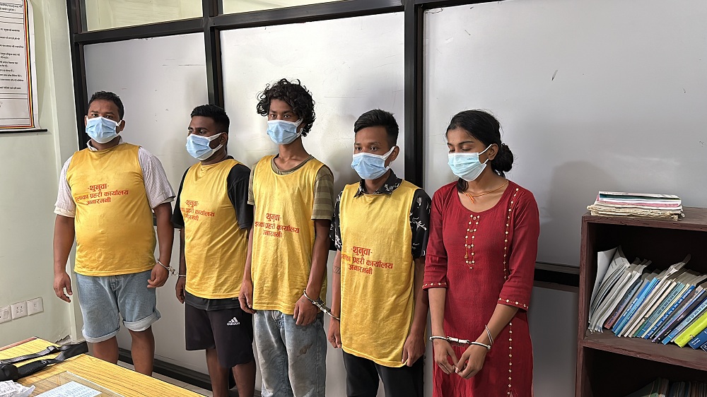 प्रहरीले घटनामा संलग्न बिर्तामोड–४ का २२ वर्षीय गंगाप्रसाद राजवंशी, २३ वर्षीय महेश राजवंशी, २० वर्षीयन वर्षा राजवंशी, ३३ वर्षीय ज्याक भन्ने भगीरथ राजवंशी र ४३ वर्षीय धनबहादुर कामीलाई सार्वजनिक गरेको हो।