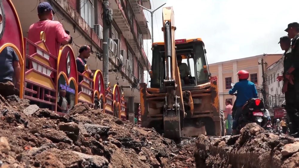 काठमाडौँ । काठमाडौं महानगरपालिका वडा नं. २२ स्थित न्युरोडका स्थानीयले काठमाडौं महानगरपालिकाले फुटपाथ बढाउन थालेको कामलाई अवरोध गरेका छन् ।