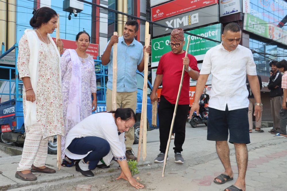 बिर्तामोड । बिर्तामोडको भद्रपुर सडक खण्डमा वृक्षरोपण गरिएको छ ।