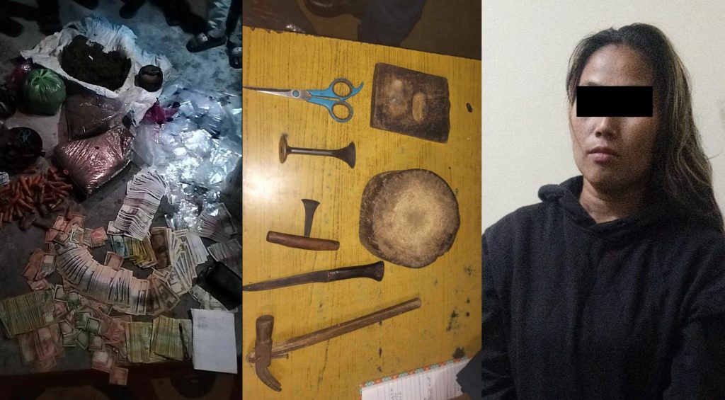ती सामानहरुसहित २९ वर्षीया दुर्गा धिमाललाई नियन्त्रणमा लिइ इलाका प्रहरी कार्यालय धुलाबारीमा राखी थप अनुसन्धान भइरहेको जिल्ला प्रहरी कार्यालय झापाले जनाएको छ ।