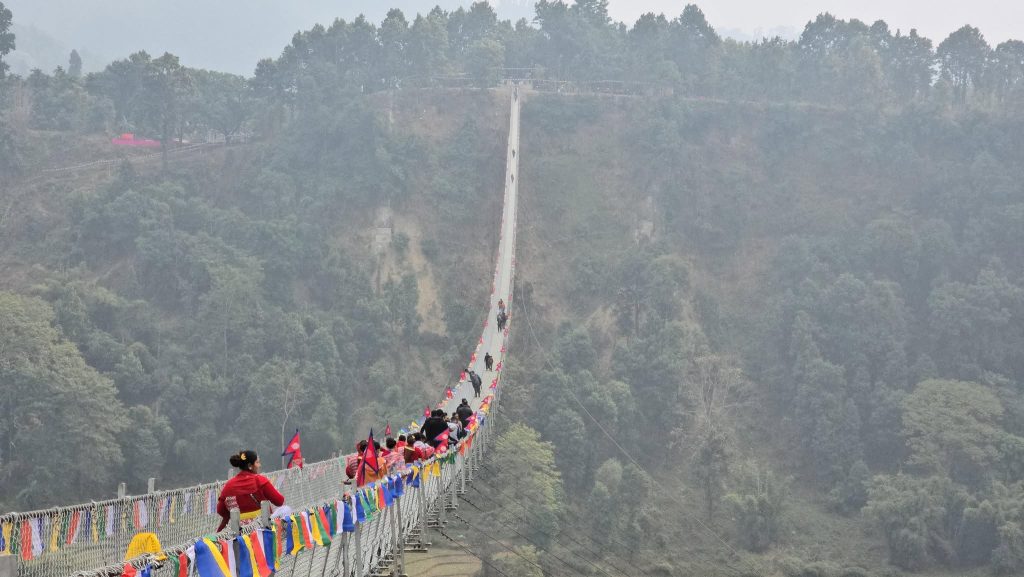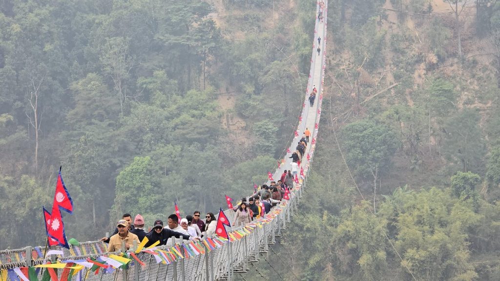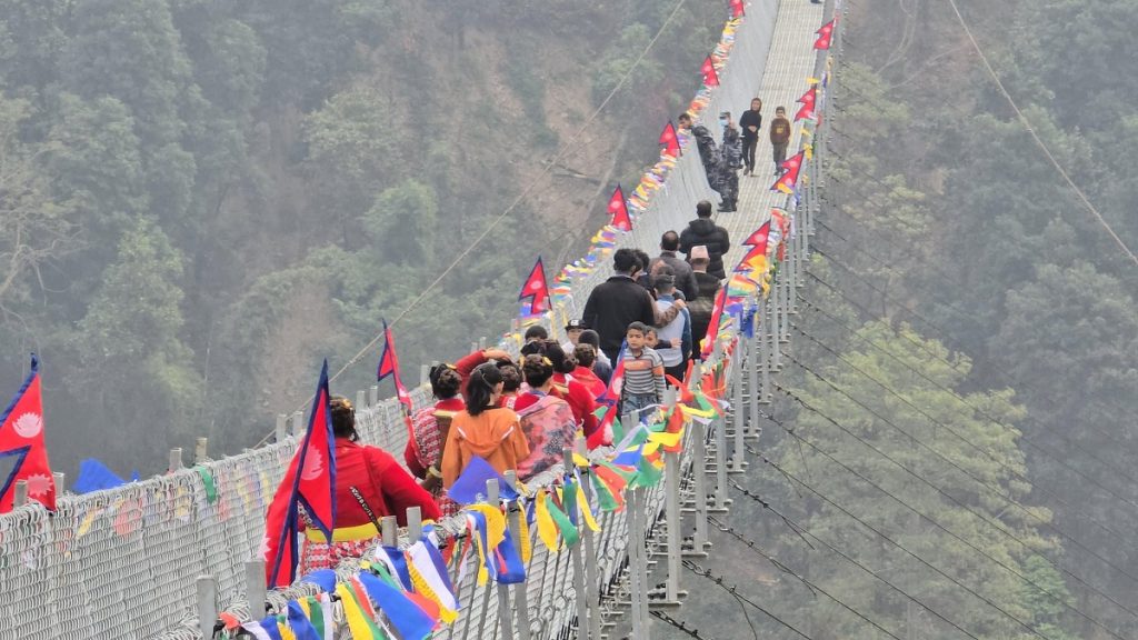 बुद्धशान्ति गाउँपालिका ७ को वडा कार्यालय नजिकै टिमाई खोलामाथि निर्माण भएको ४७७ मिटर लम्बाइको झोलुङ्गे पुल बिहीबारदेखि पूर्ण रुपमा सञ्चालनमा आएको छ।