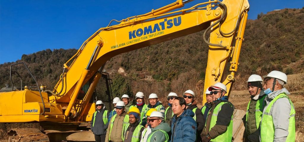 आयोजनाको बटम स्टेशनमा स्काभेटर प्रयोग गरेर केबरकार निर्माण कार्य सुरु गरिएको हो।