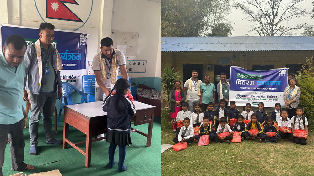 झापा- गरिमा विकास बैंक बुधबारे शाखाले बुद्धशान्ति गाउँपालिका वडा नं १ मा रहेको नमूना आधारभूत विद्यालयका विद्यार्थीलाई शैक्षिक सामाग्री वितरण गरेको छ।