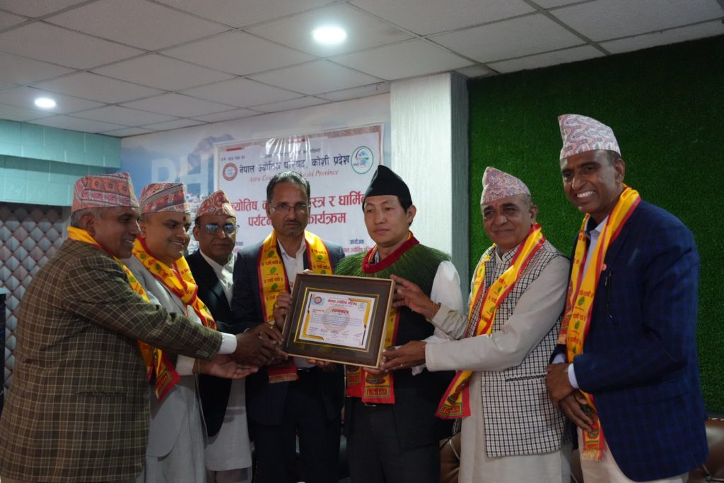 परिषद्ले पाँचथरको फिदिममा आज आयोजना गरेको ‘ज्योतिष, वास्तु, धर्मशास्त्र तथा धार्मिक पर्यटन प्रवर्द्धन कार्यक्रम’ मा समितिलाई सम्मान प्रदान गरेको हो ।