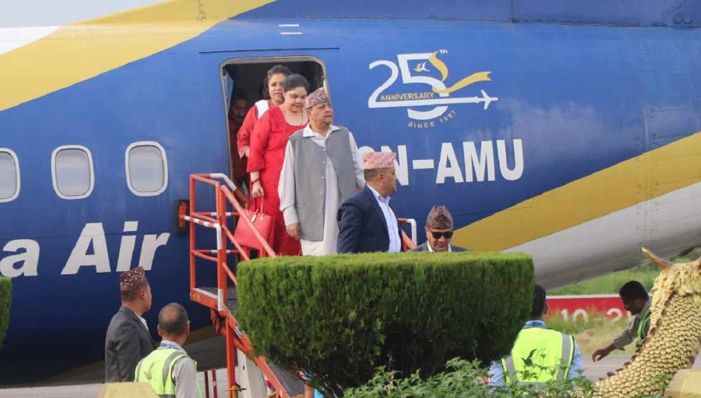 उनी दुई हप्ते बसाइका लागि दमक ९ स्थित हिमालयन महालक्ष्मी टि इस्टेटको मिनी दरबारमा आएका हुन्। अपराह्न ४ बजेको बुद्ध एयरको विमानबाट उनी झापा आएका हुन्।