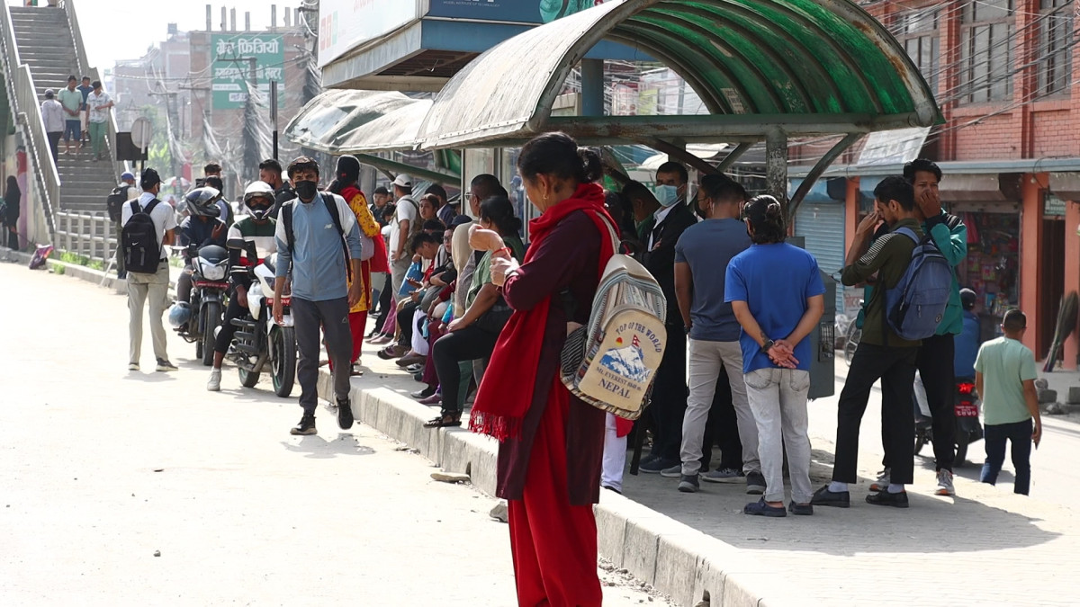 काठमाडौं उपत्यकामा छिटपुटमात्रै यातायात चलेको देखिन्छ, जसका कारण कार्यालय जानेदेखि अन्य कामको लागि सार्वजनिक यातायातको प्रयोग गर्ने यात्रुहरू सवारीसाधन कुरिरहेको देख्न सकिन्छ।