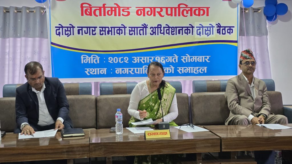 झापा – झापाको बिर्तामोड नगरपालिकाको दोस्रो नगर सभाको सातौँ अधिवेशनको दोस्रो बैठक सफलतापूर्वक सम्पन्न भएको छ। यस बैठकले आगामी आर्थिक वर्ष २०८२/८३ को नीति तथा कार्यक्रम र बजेटसहित विभिन्न महत्त्वपूर्ण प्रतिवेदनहरू सर्वसम्मतले पारित गरेको छ।
