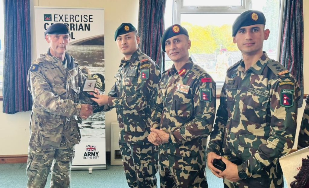 काठमाडौ- नेपाली सेनाले संयुक्त अधिराज्य बेलायतको वेल्स, ब्रेकनमा सञ्चालन भएको एक्सरसाइज क्याब्रिअन पट्रोल, २०२५ मा स्वर्ण पदक प्राप्त गर्न सफल भएको छ ।