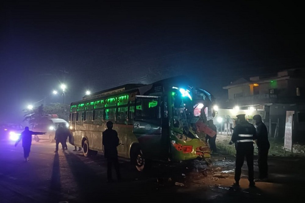 झापा- सप्तरीको कञ्चनरुप नगरपालिकामा बिहीबार राति बस र ट्रक एकआपसमा ठोक्किएर दुर्घटना हुँदा एक जनाको ज्यान गएको छ भने ११ जना यात्रु घाइते भएका छन्। दुर्घटना पूर्वपश्चिम लोकमार्गअन्तर्गत कञ्चनरुप–२, बरमझियामा राति करिब १०:४५ बजे भएको हो।