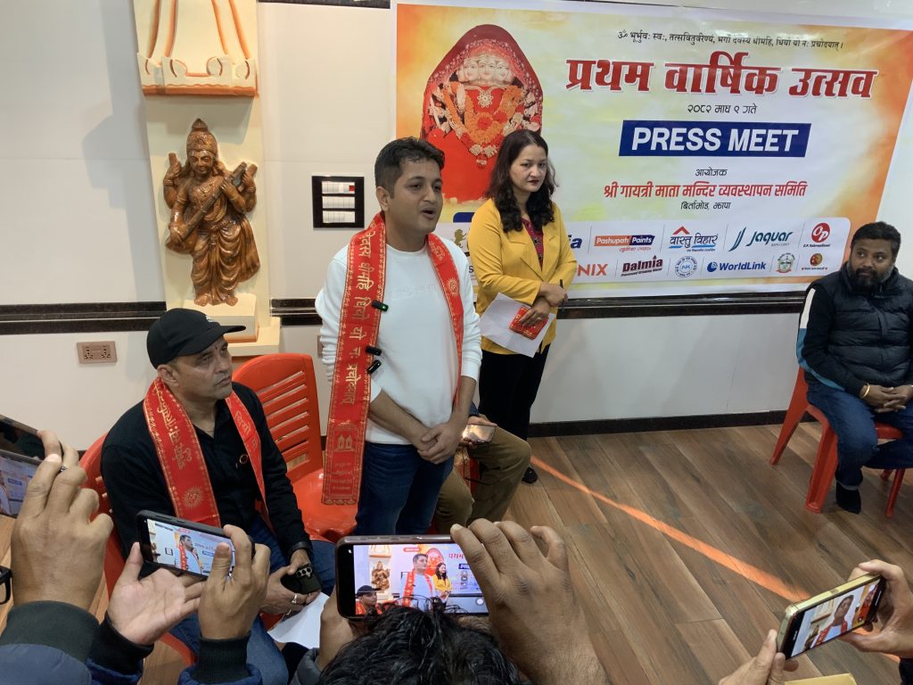 झापा- झापाको बिर्तामोड नगरपालिका–५ मा अवस्थित पूर्वकै पहिलो गायत्री माता मन्दिरले आफ्नो स्थापनाको प्रथम वार्षिकोत्सव आगामी माघ ९ गते मनाउने भएको छ।