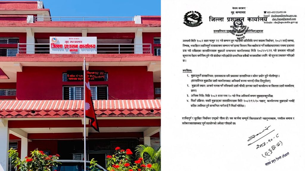 जिल्ला प्रशासन कार्यालय झापाले निर्वाचनको निष्पक्षता र गोपनीयता सुनिश्चित गर्न आम नागरिक, सञ्चारमाध्यम तथा सामाजिक सञ्जाल प्रयोगकर्तालाई जिम्मेवार बन्न आग्रह गरेको छ।