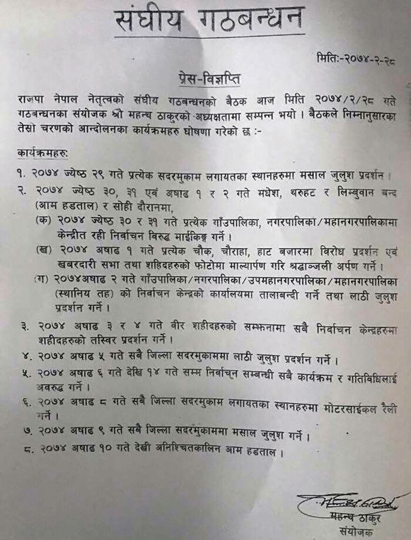 यस्तो छ राजपाको आन्दोलन कार्यक्रम