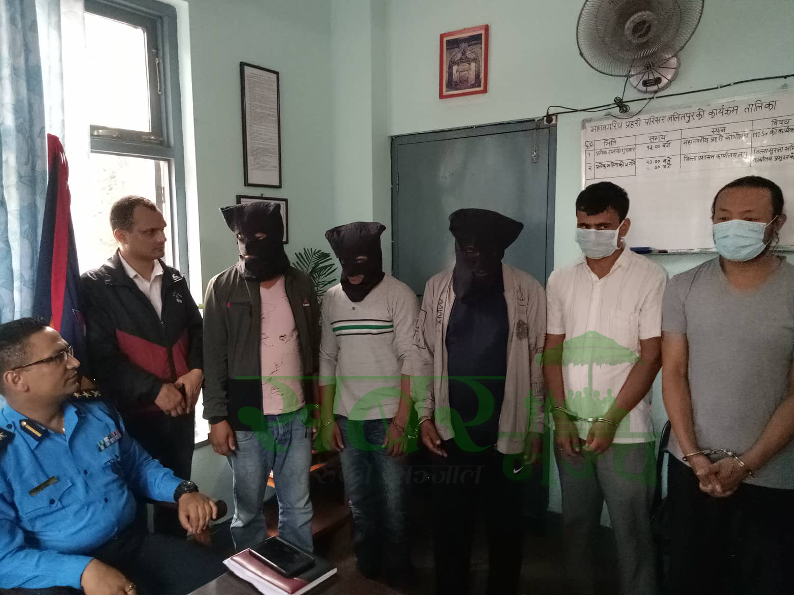 प्रहरीले हिजाे ५ राउण्ड गोली र दुई वटा म्याजिन सहित ताप्लेजुङ भइ हाल ललितपुर बस्ने हेमराज पौडेल, ललितपुर घर भइ हाल ललितपुरनै बस्ने आंशुराम मुक्तान र रामेछाप घर भइ हाल काठमाण्डाैं घट्टेकुलाे बस्ने कृष्णबहादुर जोशीलाई पक्राउ गरेकाे थियाे । उनीहरु माथि थप अनुसन्धान गर्ने क्रममा अाज थप दुई जनालाई ललितपुरको नखीपोटबाटै प्रहरीले पक्राउ गरेकाे हाे । प्रहरीले अाज परिसरमा पत्रकार सम्मेलन गरि पाचै जनालाई सार्वजनिक गरेकाे छ ।