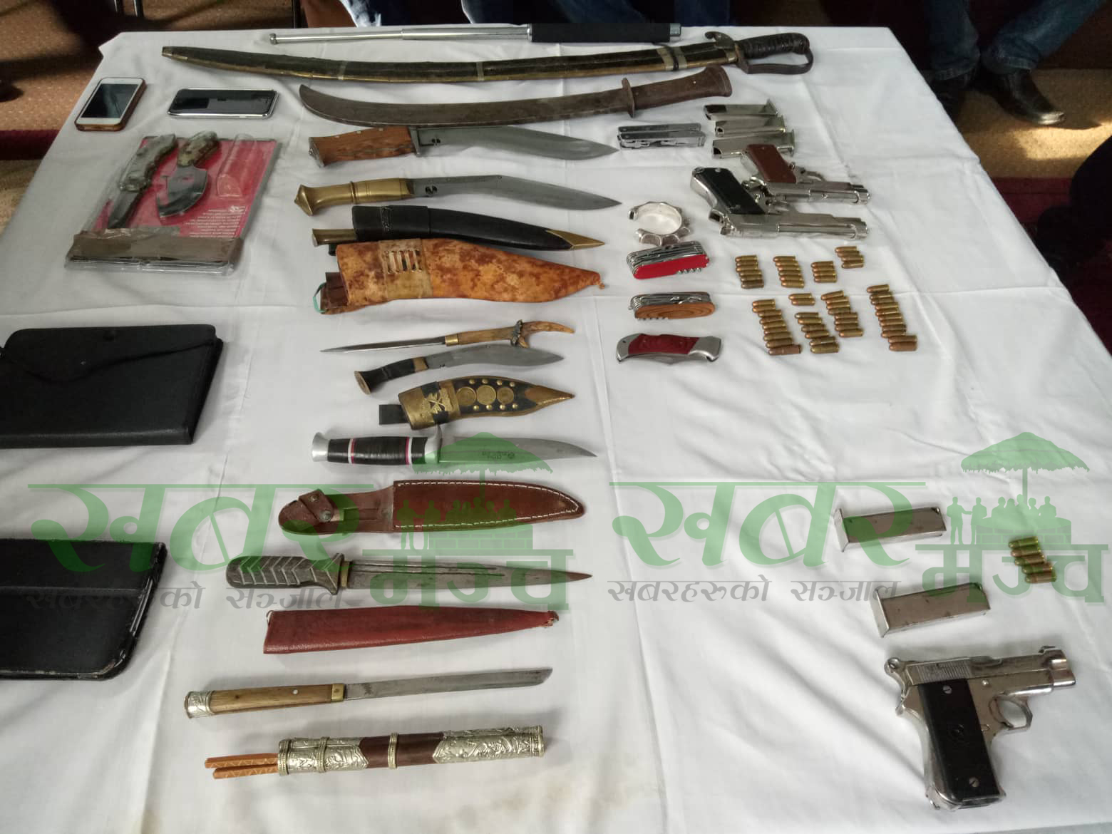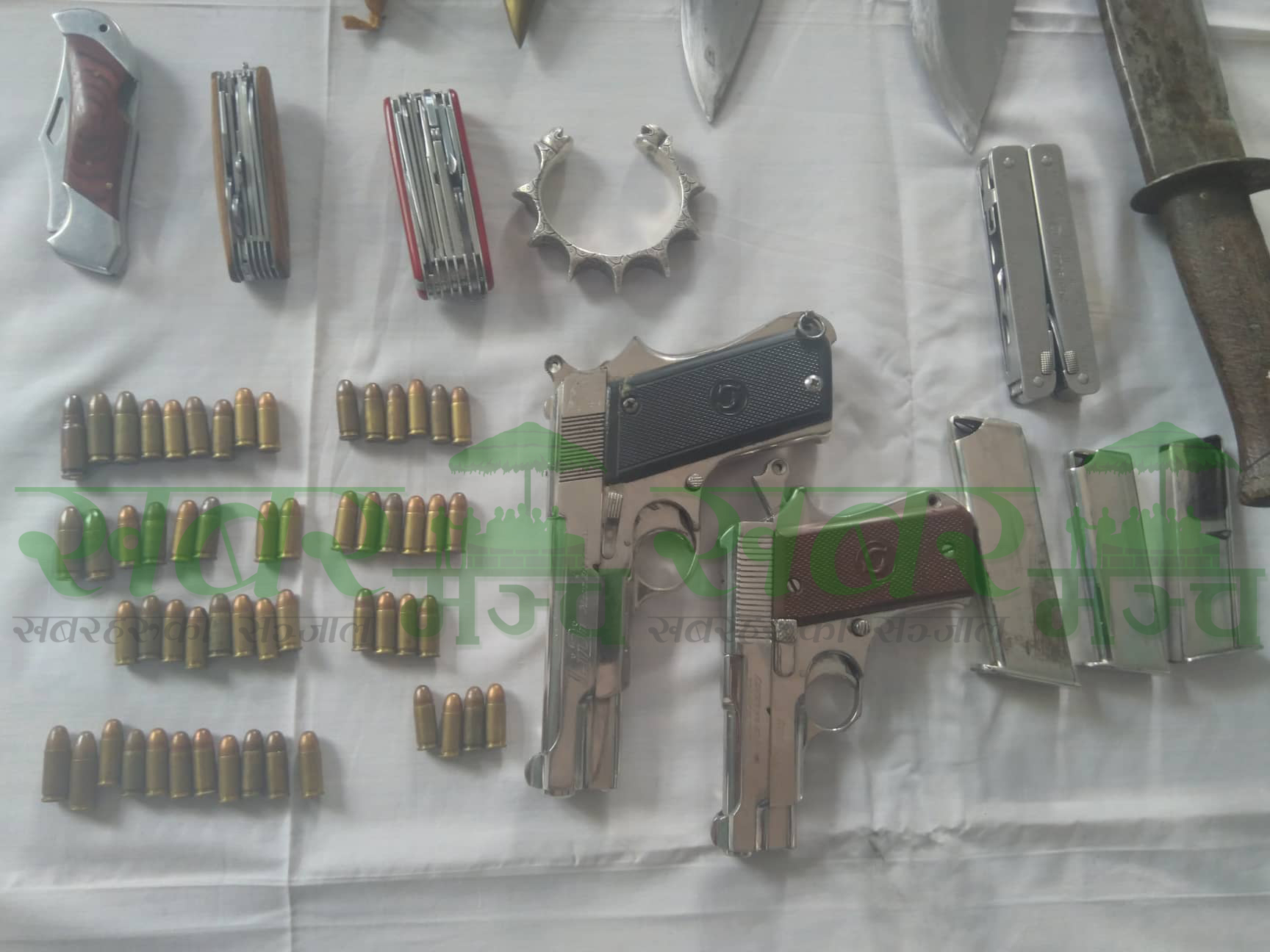 उनीहरुलाई २ वटा पेस्तोल, तीन वटा म्याजिन सहित र ५६ राउण्ड गोलीसहित पक्राउ गरिएको प्रहरीले जनाएकाे छ ।